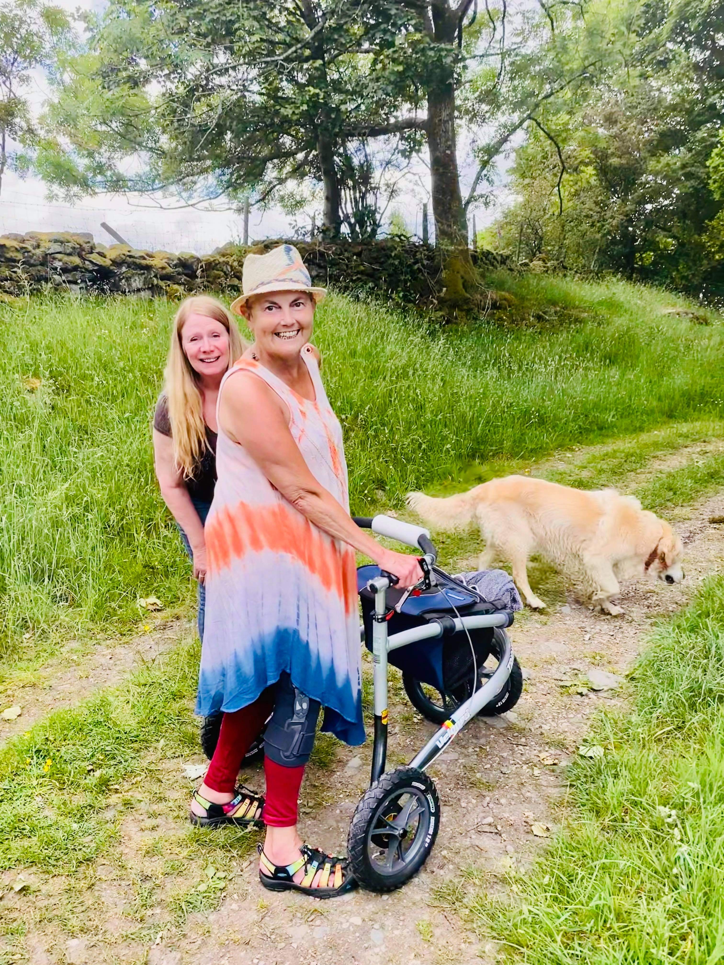 Den har förvandlat mitt liv! Visst tog jag mig ut förr, men var väldigt ostabil och jag var alltid orolig över att kanske behöva sätta mig ner där det inte fanns någon plats att sitta (tyvärr kan jag inte sitta på marken!) Nu slipper jag alla dessa bekymmer! Mitt självförtroende har ökat enormt och jag behöver inte besväras av ojämna landsvägar, fält och liknande! Helt fantastisk!!